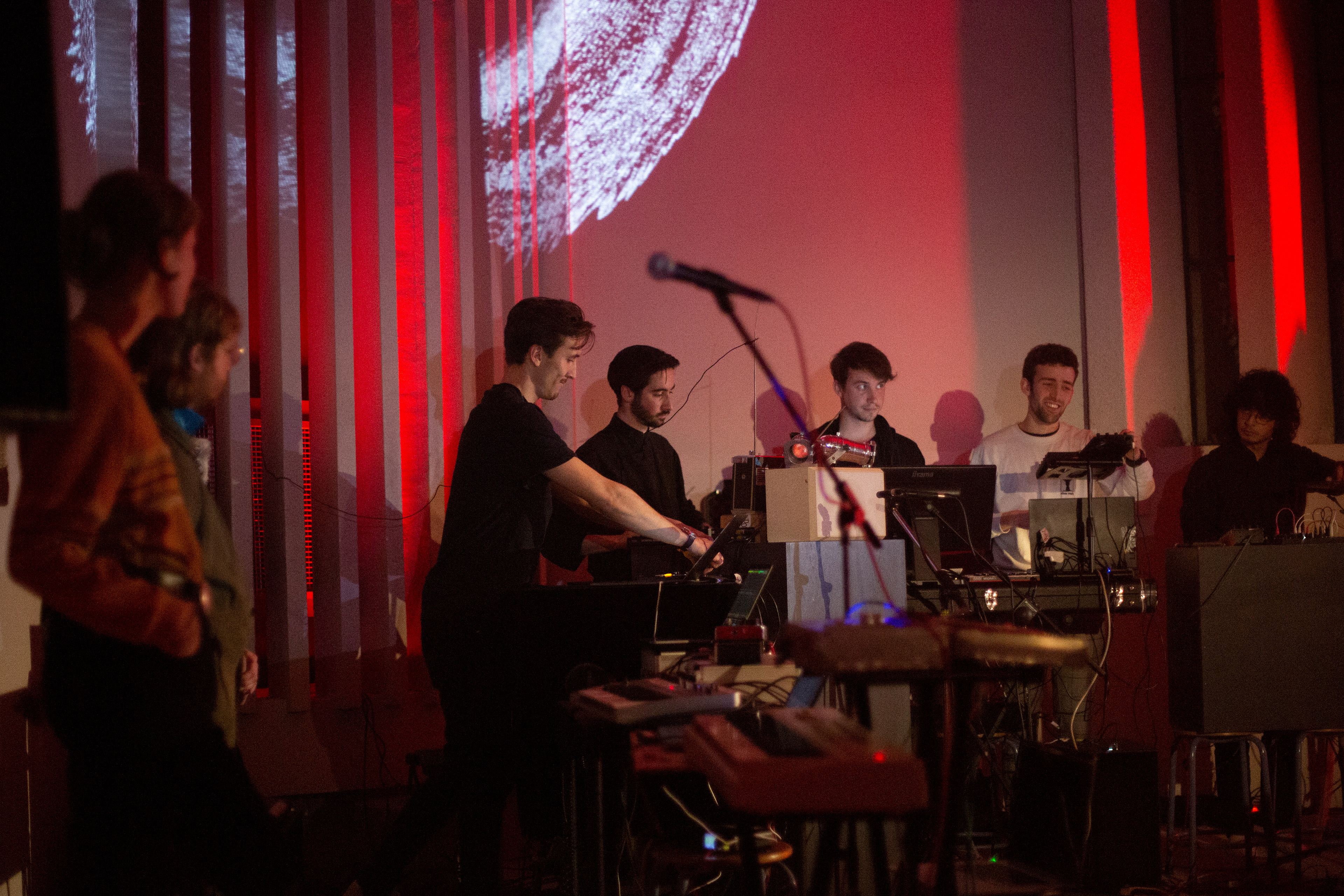 ‘Circular’ is an audiovisual performance that plays with reality using spatial sound, light, and psychoacoustics. Endlessly expanding audiovisual gestures bring the viewer into a trance-like state. The visuals are created by light artist Emanuel Nijkerk and explored within a spatial design of transparent projection screens. Electronic sounds made by audiovisual artist Victor Dissel consist of percussive sounds, microtonal harmonies and psychoacoustic effects. These sounds are transmitted live within a spatial speaker system by creative coder Gerben van der Kleij. Within this three-dimensional performative installation, countless possibilities for an altered reality are imaginable. What is reality and what is artificial? And do we still live in reality?